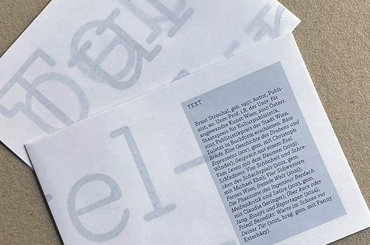 Für die Typopassage wurden in Absprache mit der Gestalterin einzelne Buchstaben der SHIFT Light getauscht, gespiegelt und gedreht. Die Biografien erscheinen in der Originalversion der Schrift.